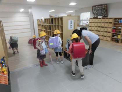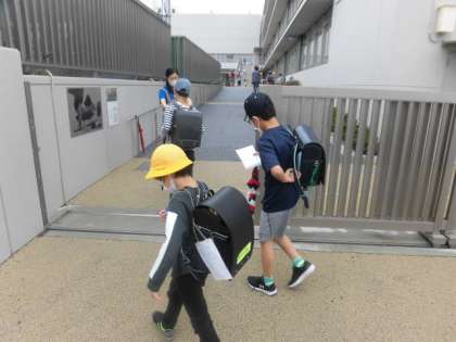 午後からの子どもたちが登校してきました。雨は小降りになってきました。傘をささずに登校してくる子もいます。傘は、傘立ての自分の場所にしっかりと入れています。分散登校最後のグループです。3時間しっかりと勉強しましょう。