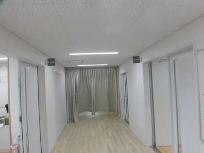 5年2組の音楽の授業です。人数が増えたので、第一音楽室と第二音楽室の両方を使って行っています。