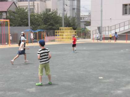 天気が良くなってきたので、4年生の20分休みから校庭での遊びを開始しました。久しぶりの校庭での遊び、みんなで体を動かして楽しく遊びました。