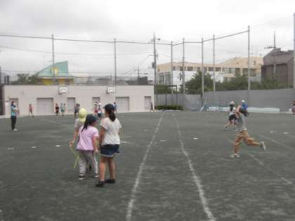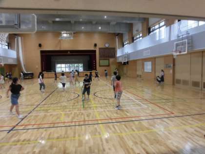 給食を食べて校庭に出てきた4年生。雨が降っていなかったので、楽しみにしていた外遊びができました。1組は、体育館での遊びです。遊べる時間が限られているので遊べるときは目いっぱい遊んでいます。
