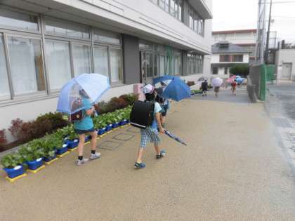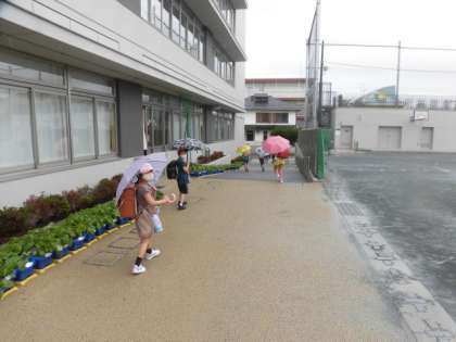 下校の時間になると、少し雨風が強くなりました。みんな傘をしっかりと握って帰っていきました。そんなに雨風が強くならなかったのでよかったです。今週も半分が過ぎました。明日も元気に学校に来てくださいね。7月は、31日(金)まで授業があります。長い1か月ですが、健康に気を付けて過ごしていきましょう。7月の学校だよりは、明日、配布となります。ご承知おきください。