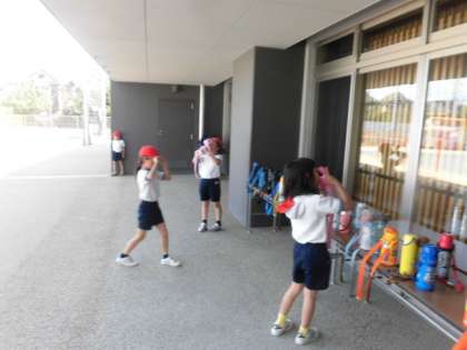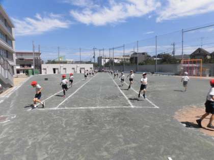 今日はとても良い天気の中、体育を頑張っている学年がたくさんありました。気温は高くなりましたが、心地よい風が強めに吹いているのでみんな元気に走っていました。とはいっても水分補給は忘れずにしている子どもたちです。
