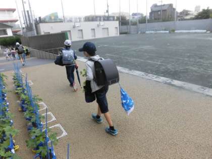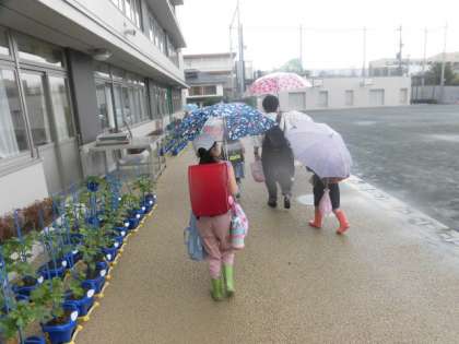 今週は雨の日が多い1週間でした。授業を終えて、子どもたちが下校しました。1・2年生の下校の時には少し雨が降っていましたが、3年生以上の下校時間には雨がやんでいました。今週も1週間、よく頑張りました。来週も1週間頑張れるよう、2日間、ゆっくりつ休んでください。
