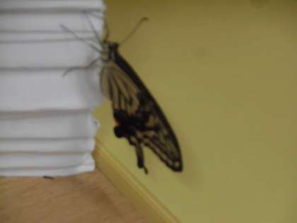 3年生が、大事に育てていたアゲハチョウ。今日のお昼に羽化しました、子どもたちは羽化の瞬間も見られたようです。羽化したばかりのアゲハチョウは、羽を乾かすためすぐには飛び立ちません。みんな心配していましたが、帰りには、大空に飛んでいきました。いつまでも元気でね。