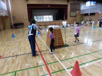模範の歩行を見た後は、実際に1年生も練習しました。1人ずつ全員が行いました。