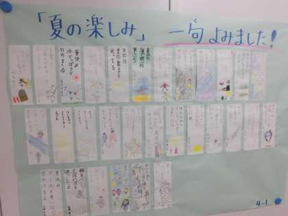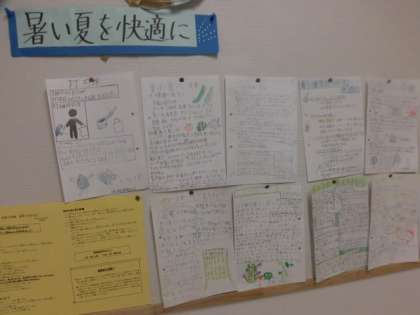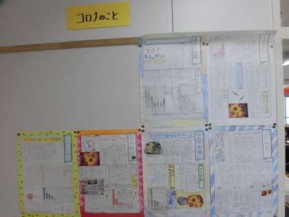 廊下の掲示板には、それぞれの学年で取り組んだ学習の作品等が掲示されています。しっかりと学習してきた様子が伝わる作品ばかりです。