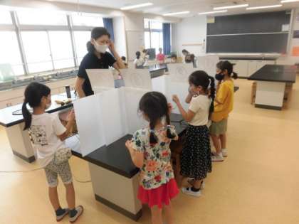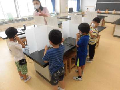 今日は、1・2年生の聴力検査です。4人ずつ検査を受けています。1年生もしっかりと話を聞いておしゃべりをしないで検査を受けています。検査が終わってから教室までも静かに帰っていきます。