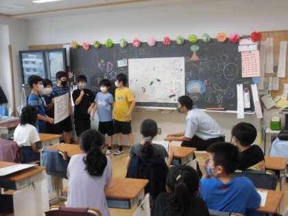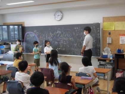 放送での離任式が終わった後は、担任をしていただいた学級などに行っていただきました。子どもたちが先生方に書いた「お礼のお手紙」を読み、自分たちで作った花束などを渡して感謝の気持ちを伝えました。