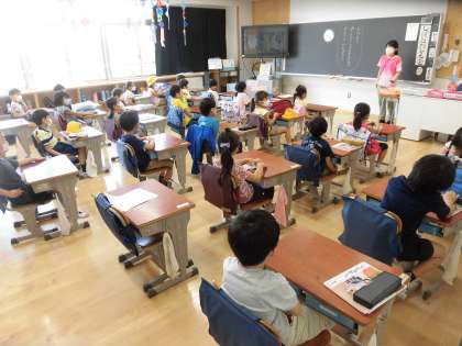 今朝は、テレビ放送の機器の不具合により音声のみの放送での朝会となりましたが、どのクラスもしっかりとお話を聞けていました。