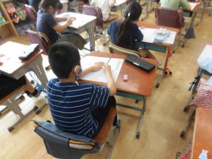 1学期も残り1日。これまで学習してきたことのテストに取り組んでいる学級がたくさんあります。みんな真剣にテストに取り組んでいます。