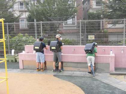 色々なことがあった1学期も今日で終わり。子どもたちは、いつものように、元気に登校し、手洗いをしっかりして教室に向かっています。手洗いは、夏休みもお家でも続けましょうね。