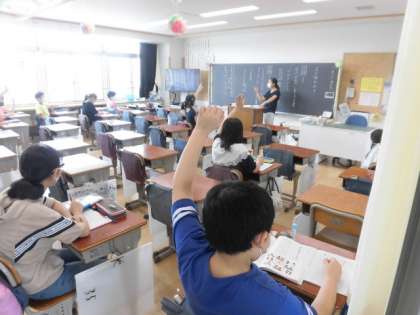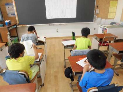 教室では、先生が用意したプリントに取り組んだり、先生と一緒に確認したりしながら学習を進めています。1学期の復習、しっかりと頑張っています。