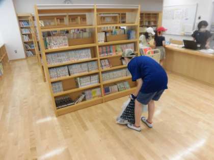 図書室開放も2日めとなりました。1年生も借りに来ています。昨日より借りに来る子どもが増えています。本に親しむ夏休みですね。