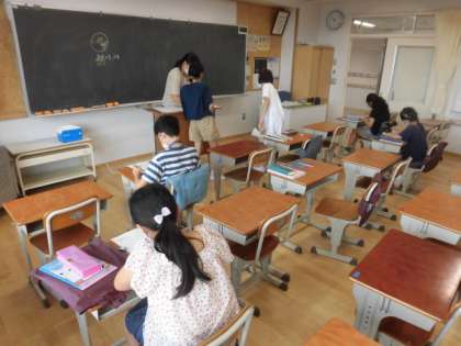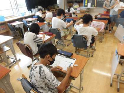 6年生は、教室と算数教室の3つに分かれて算数の学習に取り組んでいます。