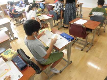 4年生も国語の学習です。漢字辞典を使って部首を調べています。