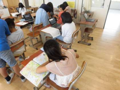 4年生は、地図帳やタブレットで都道府県を調べてクイズづくりに挑戦しています。どんなクイズができたでしょうか。