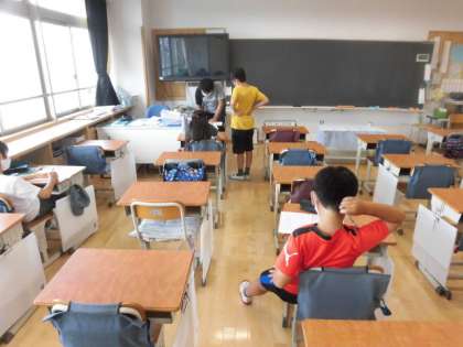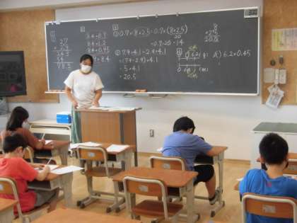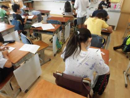 5年生は、教室と算数教室の3か所で、算数のプリント学習を行っています。