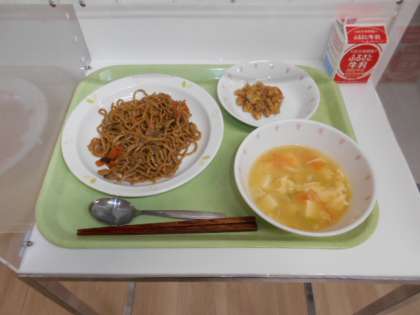 ソース焼きそば 牛乳 大豆とじゃこの甘辛あげ