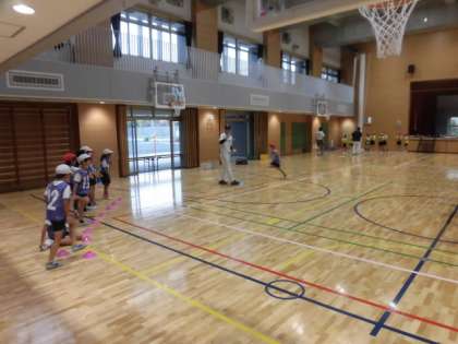 3年生が体育で、読売巨人軍のジャイアンツアカデミーでコーチをしている方をゲストティーチャーに迎え、ベースボール型のゲームの指導をしていただきました。本来は、校庭で行う予定でしたが、あいにくの雨に体育館での実施となりました。狭い場所でしたが、工夫したゲームに楽しく取り組みました。
