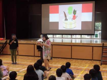 4年生は、世田谷区教育センターに行って、「プラネタリウム」と「多文化体験コーナー(タッチザワールド)」の学習をします。今年後は教育センターに行っての学習は中止となったので、代わりに「タチザワールド」の先生やALTの方が学校にきて教えてくれました。1校時と2校時に体育館で「英語の絵本の読み聞かせ」「日本文化」「異文化体験」などのコーナーに分かれて楽しく活動しました。
