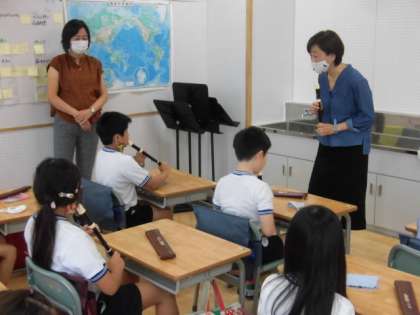 3年生の音楽の授業です。最初に運動会の「ゴーゴーゴー」を歌いました。いつもの運動会は大きな声でが中心となりますが、今年はきれいな声を意識して練習していました。十五夜の日に歌う「うさぎ うさぎ」もしっとりとした歌声がきれいでした。リコーダーの練習も感染予防をしっかりとしたうえで行っています。勝手に吹くことはなく、自分の番の時にきれいな音をだせるよう集中して取り組んでいます。