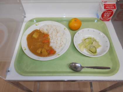 チキンカレーライス 牛乳 キャベツサラダ