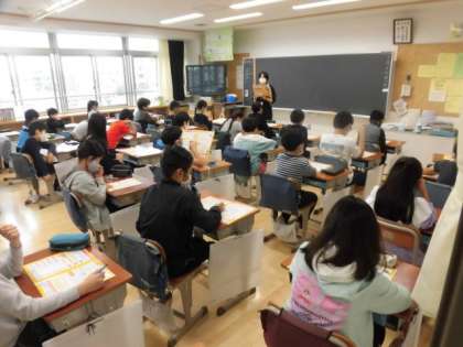 観劇後は、教室に戻って劇に内容から「万引き防止」についてみんなで話し合いました。本当の勇気とは何か?みんなで考えていました。