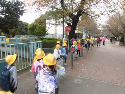 1年生が生活科の「秋さがし」の学習で羽根木公園まで歩いて出かけていきました。この前の「せせらぎ公園」より遠い公園でしたが、みんな元気に歩いていきました。