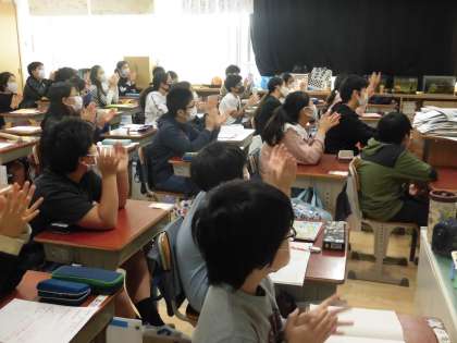 今朝は、音楽朝会がありました。学芸会に向けて、「幕をあける歌」を歌いました。本番では歌えませんが、気持ちが高まりました。体育館もひな壇が出て暗幕やライトがついて、すっかり学芸会モードです。残り1週間と少し、感染予防に努めつつ練習をがんばっていきます!