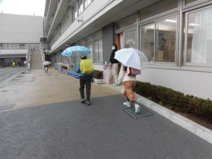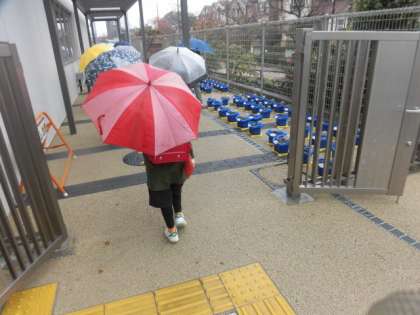 久しぶりに雨が降っている中での登校になりました。「今日は、ラジオ体操できないね」という声が聞こえてきました。早く天気が良くなるといいですね。