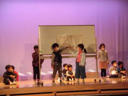 いよいよ明日・明後日は子どもたちが頑張って練習してきた学芸会です。今日は最後のリハーサルです。どの学年もこれまでの練習の成果がよく出ていました。写真は1年生・2年生・3年生の一場面です。