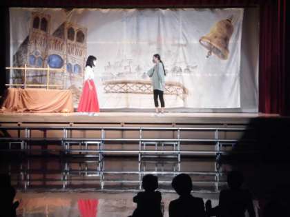 舞台でもマスクをしての学芸会。鑑賞も友達との間を空けておしゃべりなしで鑑賞しています。お客さんがいるので、緊張もありましたが、みんな頑張って演技していました。