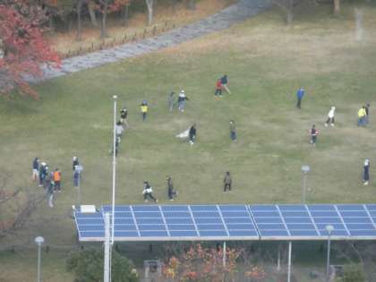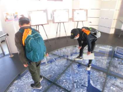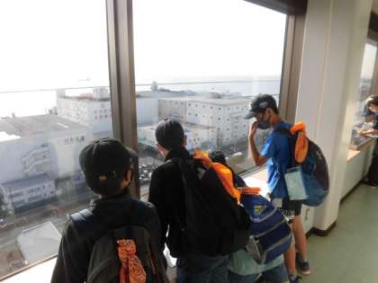 最初の見学場所の川崎マリエンでは地上50mから、物流の拠点の川崎港や京浜工業地帯の様子を見て調べました。密をさけるため、最初は2組が見学し、そのあと、1組と交代しました。交代まで1組は東扇島中公園で体を動かしてみんなで楽しく遊びました。