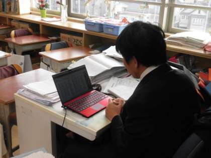 はじめての「Zoom」での保護者会、多数参加いただきありがとうございました。途中から入室されようとして許可が下りず入室できなかった方もいらしたようです。初めてのことで先生方も画面に向かって話すのに手いっぱいになってしまったようです。申しわけありませんでした。11日(金)の1年生から3年生の保護者会の際には改善できるようにしていきます。写真は4年生の先生方が頑張っている様子です。