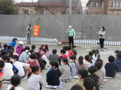 2学期最後の避難訓練は、朝の時間に行いました。地震を想定して避難しました。