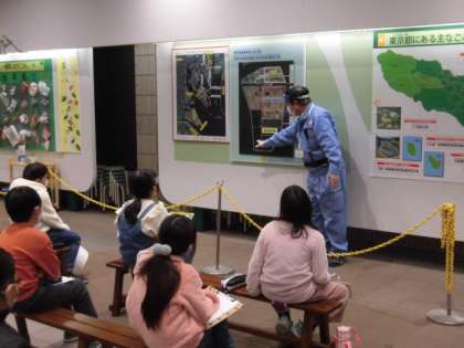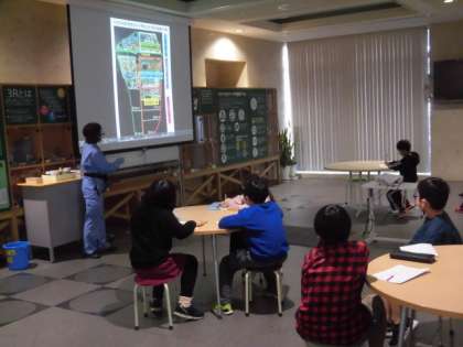 午後からの見学場所は、中央防波堤埋め立て処分場です。密を避けるために、1・2組が最初に説明を聞き、3組はバスで処分場を回りました。写真は、1・2組がお話を聞いているところです。各クラス2グループに分かれ4か所で説明を聞いています。