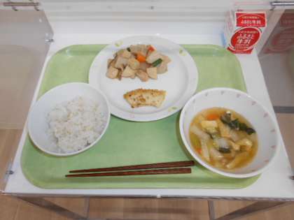 麦ごはん 牛乳 いかの七味焼き いりどり煮 みそ汁