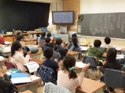 2種類のリズムパターンがあり、難しかったですが、音楽の授業でやっていることもあって上手にできました。音楽クラブの人たちもお手本になってくれました。