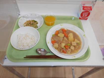 麦ごはん 牛乳 じゃがいものそぼろ煮 ごま酢かけ