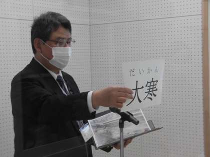 1月20日は、大寒です。1年中で最も寒い時季ですので、しっかりと防寒をして、体調管理に気を付けて過ごしましょう。