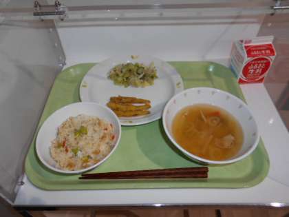 子ぎつねごはん 牛乳 わかさぎの天ぷら