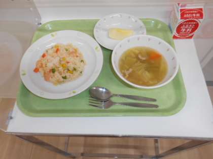 えびピラフ 牛乳 白いんげんの田舎風スープ