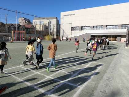 今日の朝の持久走は、4年生でした。とても良い天気の中、自分のペースで最後まで走り続けられています。終わった後はマスクをして、手洗いもしっかりとして1時間目の授業に臨んでいます。