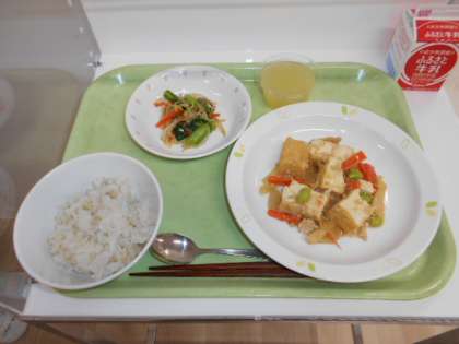 麦ごはん 牛乳 生揚げのそぼろあんかけ