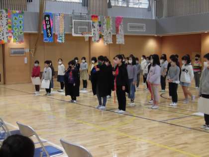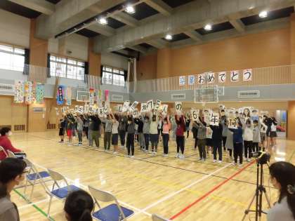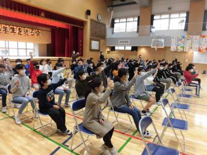 4年生は、6年生1人ずつの似顔絵を描いたものを見せてくれました。最初に似顔絵が出て、その後に名前が出ると、似ていたり似ていなかったり・・・とっても嬉しそうにみんな笑っていました。