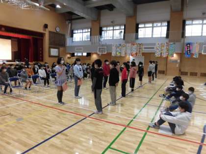 5年生は、ダンスやパフォーマンスに合わせて感謝の言葉を見せてくれました。高度なパフォーマンスに、6年生からも「おぉぉぉ!!」と歓声が上がっていました。
