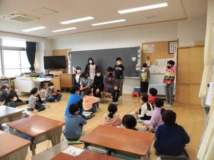 昼休みには、せせらぎ班でのお別れ会がありました。5年生が班をまとめ、6年生の卒業をみんなでお祝いしました。