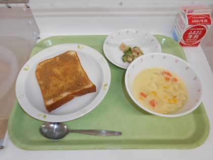 きなこバタートースト 牛乳 クリームスープ