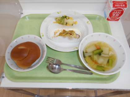 黒砂糖パン 牛乳 魚のガーリック焼き