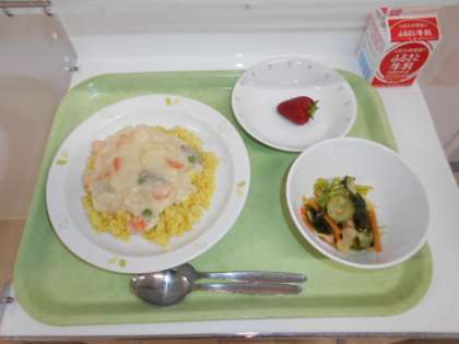 ドリア風 牛乳 わかめサラダ くだもの